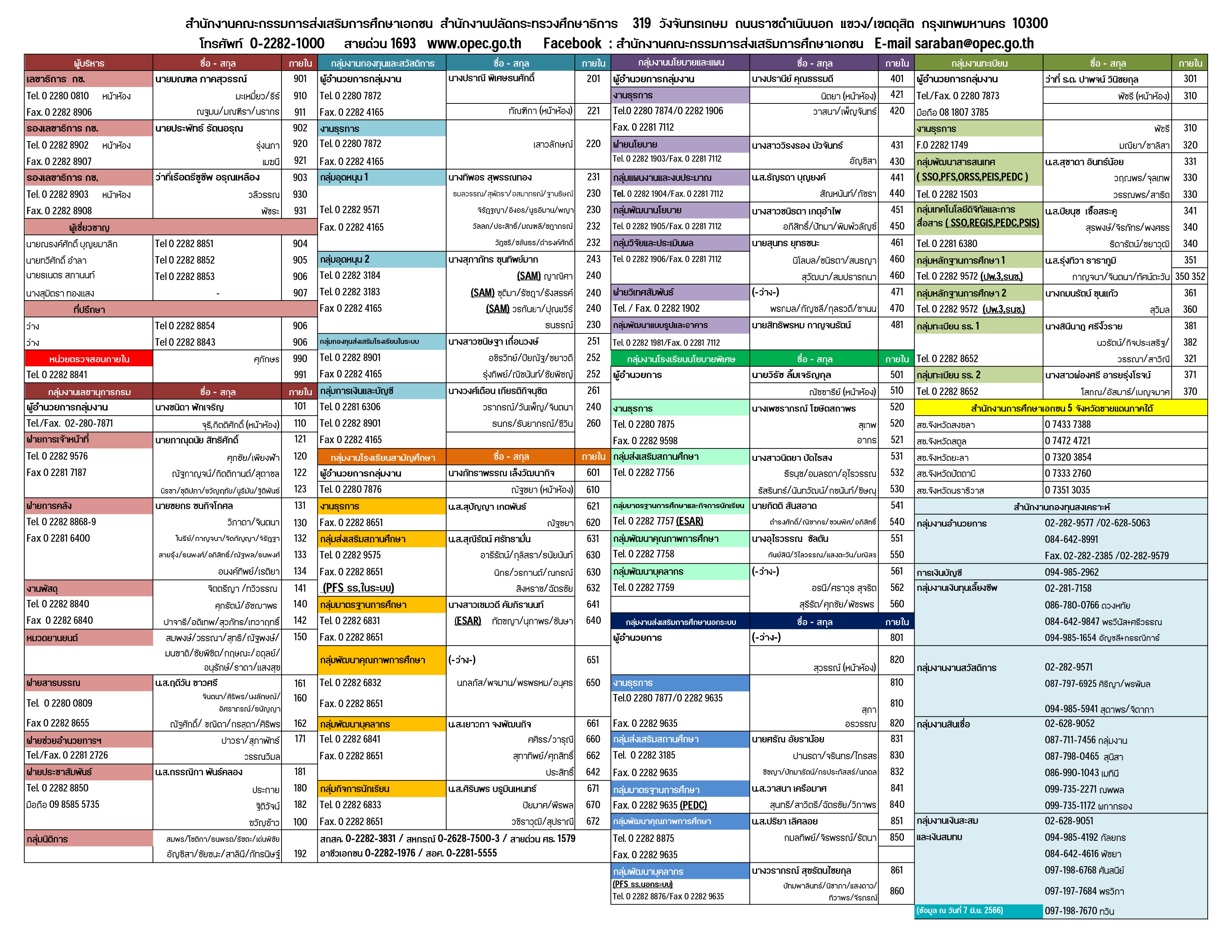 อีเมลติดต่อสารบรรณกลาง saraban@opec.go.th